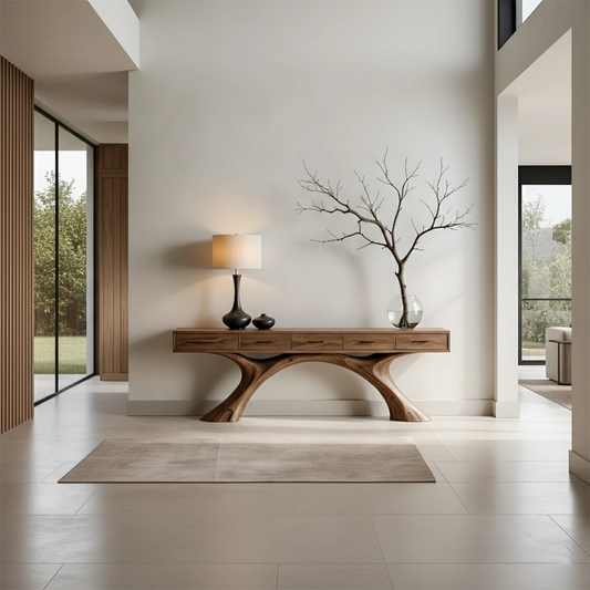 We specialize in handcrafted wooden furniture pieces such as tree bookshelves, coffee tables, console tables, and home office collections — all designed with care, sustainability, and natural materials in mind.