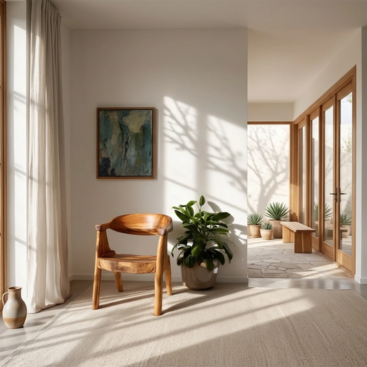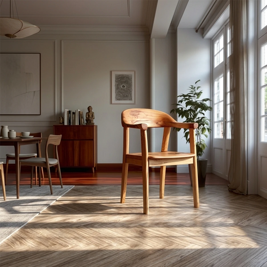 Natural Wood Chair with Curved Armrest and Sculpted Seat for Daily Comfort