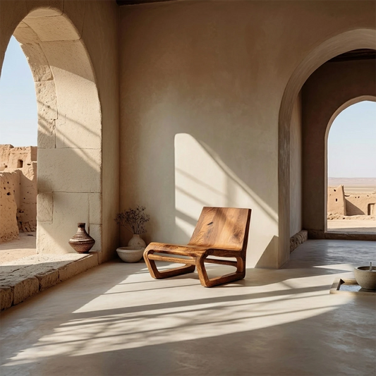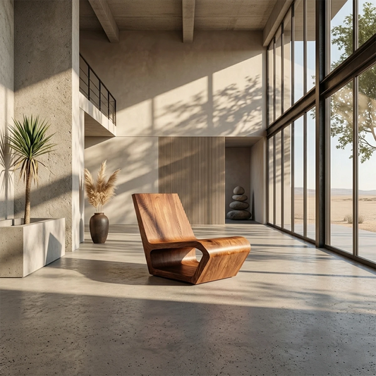 Natural Wood Lounge Chair with Sculptural Form and Low Profile Seating Design